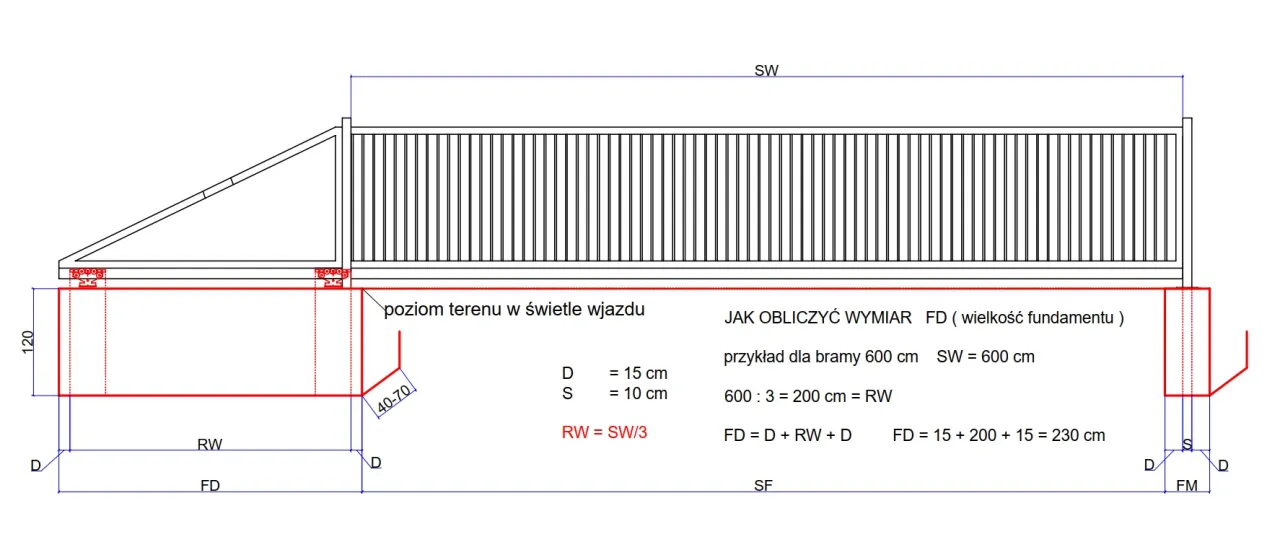 Jakie wymiary fundamentu są potrzebne dla bramy przesuwnej?